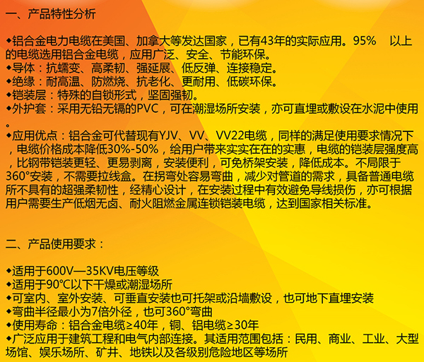 鋁合金電纜:鋁合金電纜ZR-YJLHV 瀏覽:3606